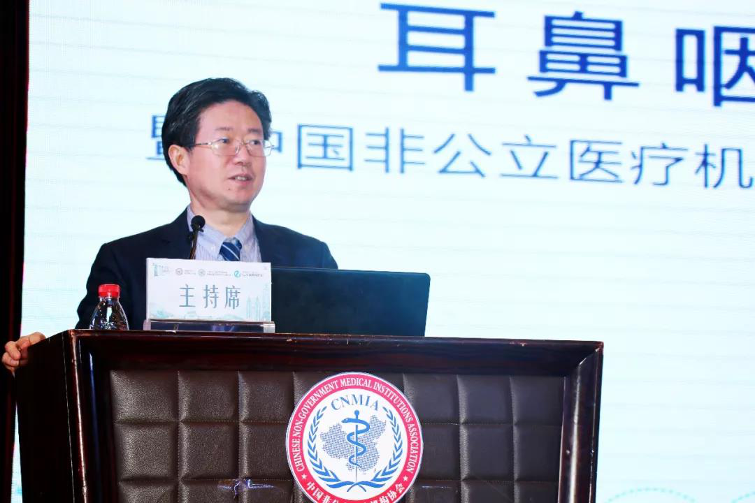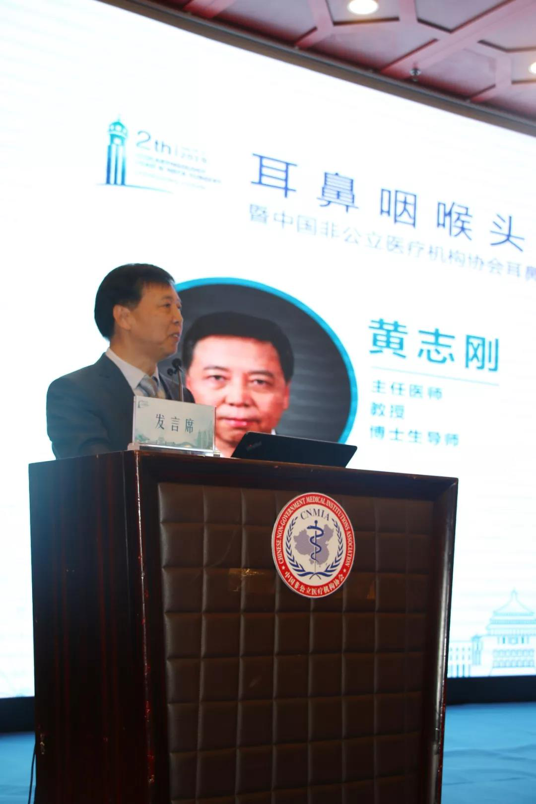 首都医科大学附属北京同仁医院副院长、国务院政府津贴专家黄志刚教授致辞。黄院长从学术交流没有公立与非公之分,投资背景不同不影响医学的研究、探讨与交流,非公医疗机构是市场大健康产业的有益补充,应该与公立医疗机构一起合作发展。
