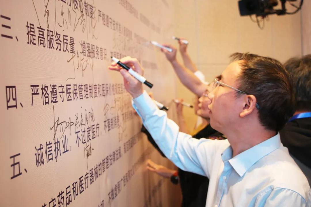 一纸承诺就是一份责任和使命,中国非公医疗机构作为全国卫生医疗事业中不可或缺的重要组成部分,为确保人民群众的身心健康和促进卫生医疗事业的发展发挥着举足轻重的作用。我们有理由相信,全体非公医疗机构在协会的正确指导下,定能不辱使命、创新发展,为全国的老百姓身心健康保驾护航,并提供更多更优质的医疗服务,41家非公医疗机构代表在现场共同签名承诺。